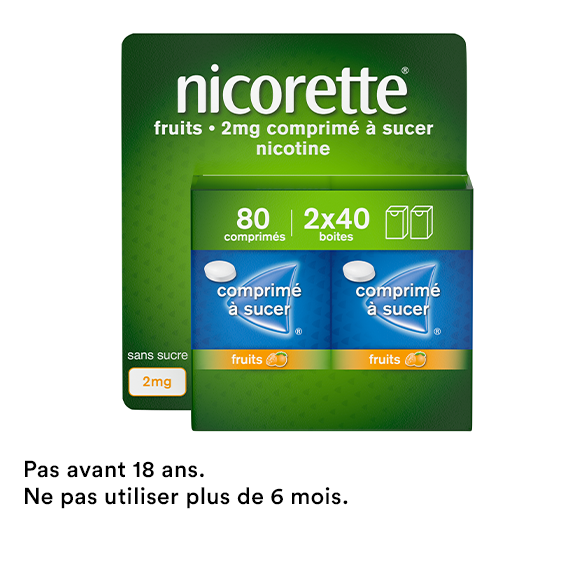 Les comprimés à sucer Nicorette® peuvent être utilisés dans le cadre d’une arrêt immédiat du tabac ou d’une réduction progressive avant l’arrêt complet.